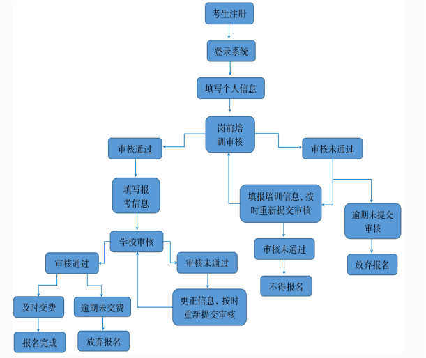 2.报名资格审核结果查询。考生提交报名信息后,一般48小时内反馈审核结果,考生需及时登录报名系统查询。审核通过的考生即可进行网上交费完成报名;审核不通过的考生须于报名资格审核截止时间(8月1日18:00)前更正信息并重新提交报名,直至审核通过进行交费方能完成报名。