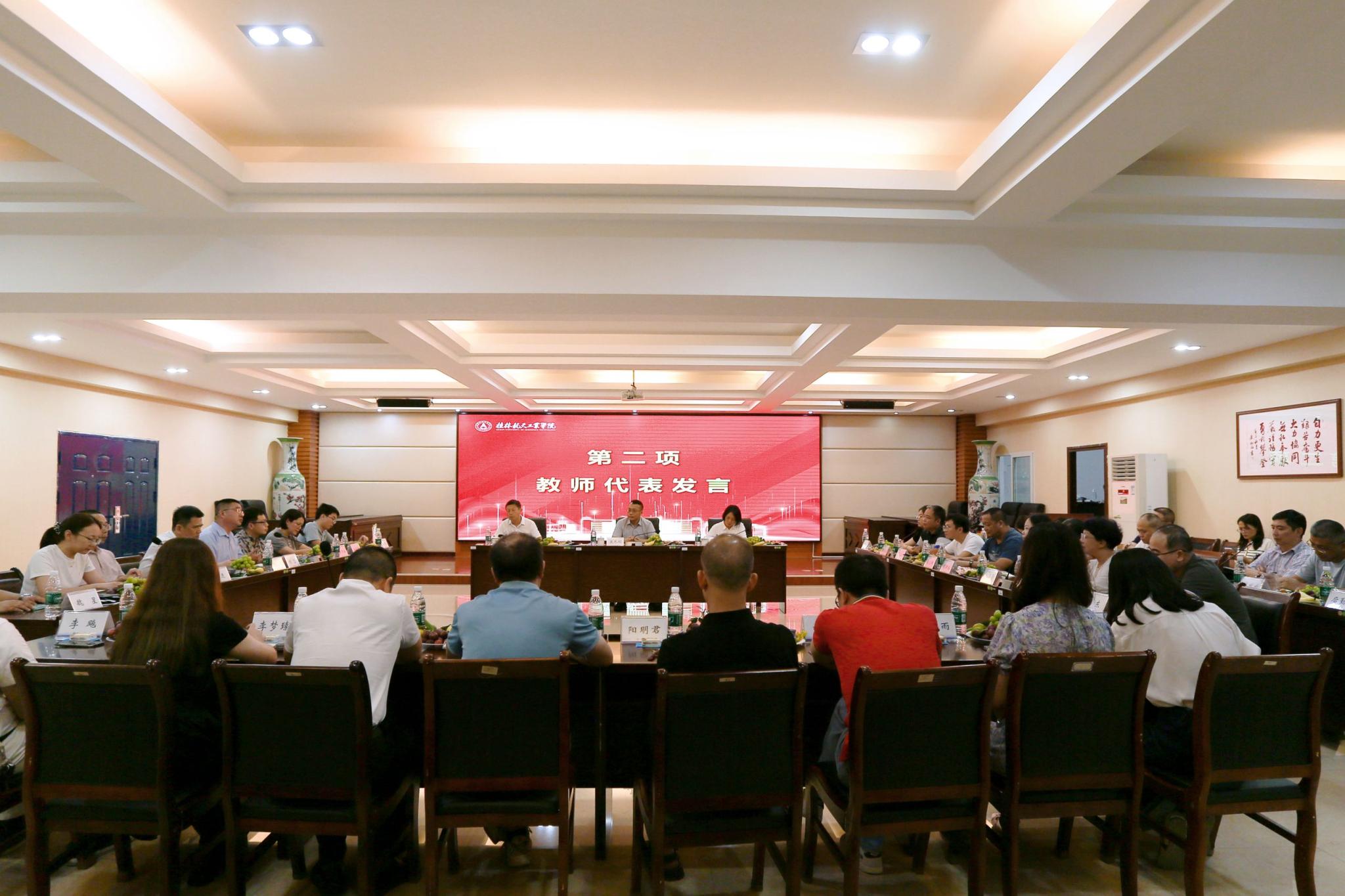 9月10日下午,“以教育家精神铸魂强师,谱写教育强国建设华章”——学校庆祝第41个教师节座谈会暨优秀教师表彰大会在飞天楼520会议室举行。校长吴尽昭、副校长葛莉、副校长张立国等校领导出席会议。受表彰教师代表及来自各部门单位的24名教师代表参加座谈,相关职能部门单位负责人列席座谈会。葛莉副校长主持会议。