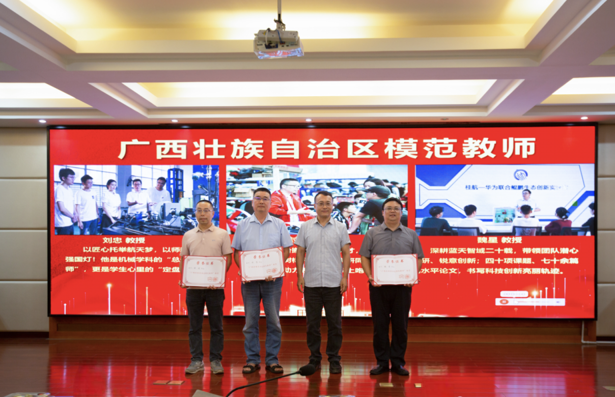 会上,校领导为广西技术发明一等奖获得者、广西模范教师等10名获奖教师代表颁奖,获奖代表发表感言,分享了教学、科研等方面的宝贵经验,青年教师及新教师代表分别发言,阐述个人成长及职业发展规划,并表示将以获奖教师为榜样、不断开拓创新。